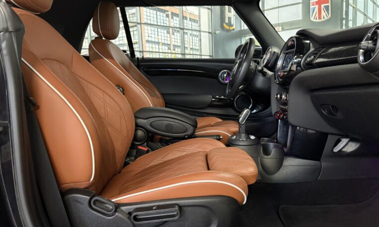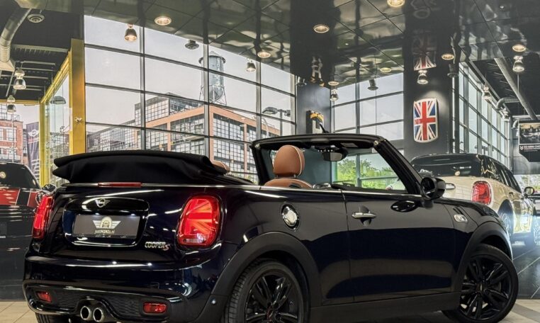 MINI COOPER S CABRIO AUT LEDER CARPLAY NAVI 17 inch JCWZeer chique en luxe uitgevoerde MINI COOPER S CABRIO 2.0 automaat 192 pk uit oktober 2019 van 1e eigenaresse. Dit betreft het facelift model, uitgevoerd in ENIGMATIC BLACK METALLIC metallic met een CHESTER malt-brown leder sport interieur. De MINI COOPER S CABRIO automaat verkeert in uitstekende staat. Extra fabrieksopties onder andere: